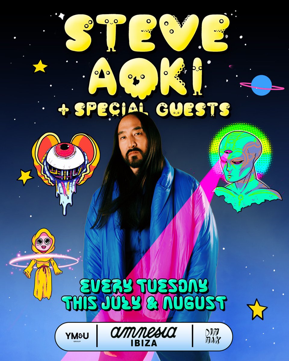 Guess what?! @steveaoki will be taking over the iconic @Amnesia_Ibiza every Tuesday in July & August! ✨👽